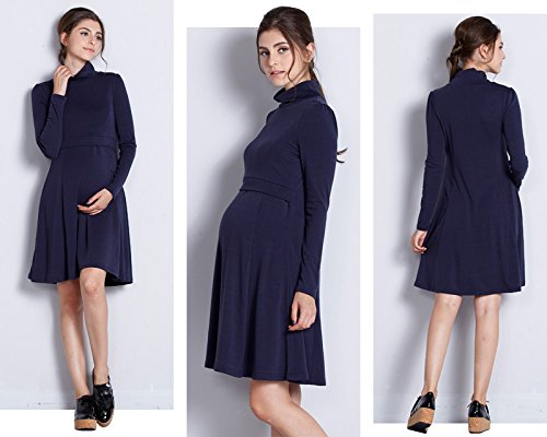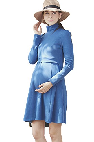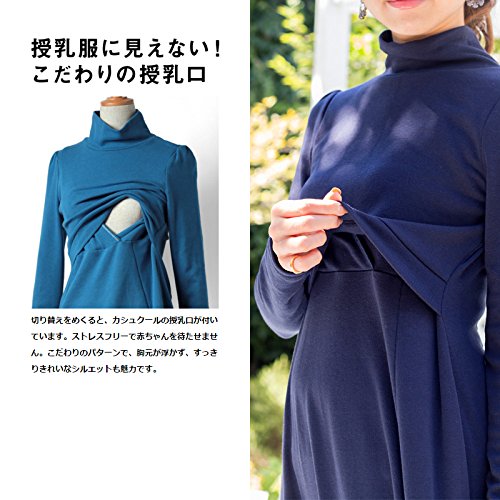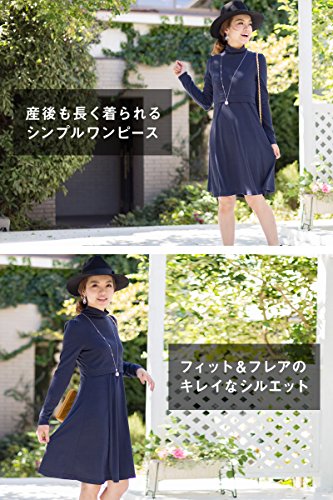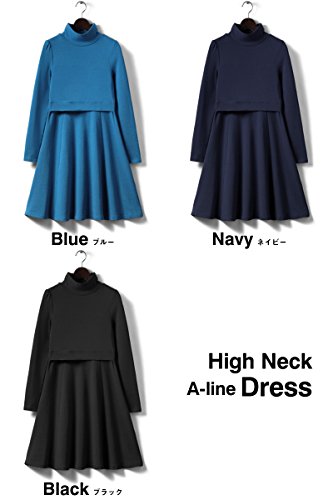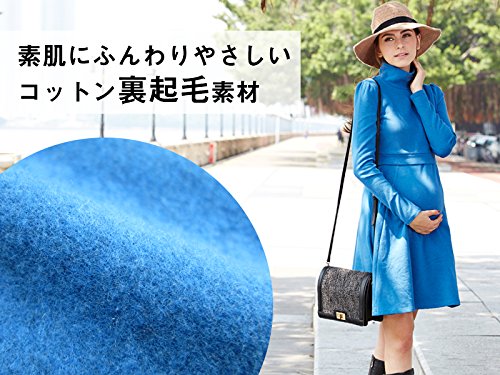 スウィートマミー (Sweet Mommy) あったか 裏起毛 ハイネック シンプル フレア ワンピース 授乳服 / マタニティ L ブルー