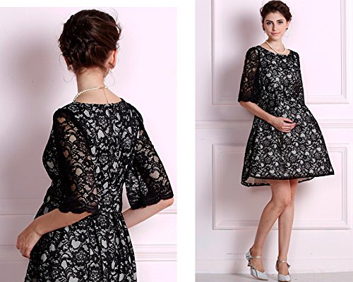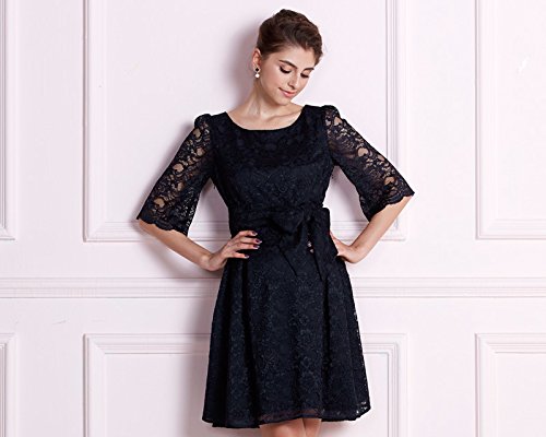 透け感がエレガントなスカラップの七分袖で上品な総レースドレスにスウィートさをプラス。