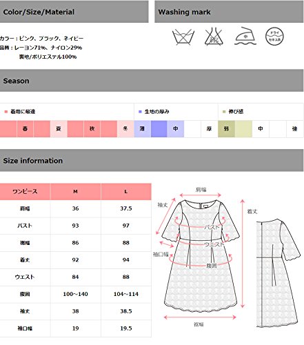 - サイズ(cm): M(肩幅36,バスト93,裾幅86,着丈92,ウエスト84,腹囲100-140,袖丈38,袖口幅19), L(37.5,97,88,94,88,104-114,38.5,19.5)