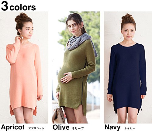 - 産前産後兼用 授乳口付き 長袖 ニットワンピ