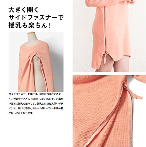 スウィートマミー (Sweet Mommy) オーガニックコットン サイドスリット ラウンドネックニットワンピ 授乳服 / マタニティ M アプリコット
