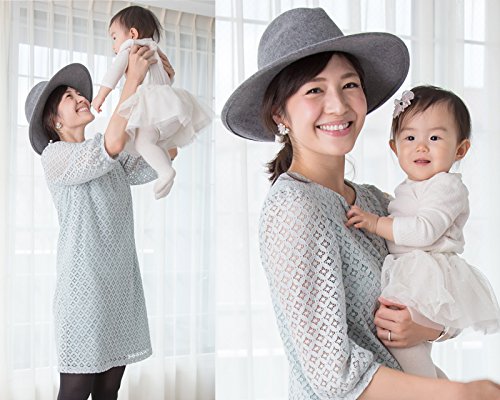 清潔感のある花柄のレースにシンプルなラインで、エレガントになりすぎず大人可愛いママを演出。