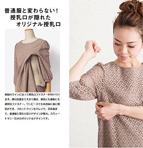 スウィートマミー (Sweet Mommy) 総レースAラインワンピース 授乳服 / マタニティ L モカ