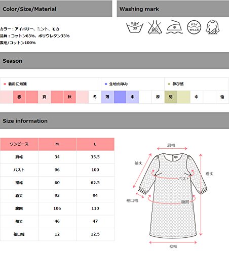 - サイズ(cm): M(肩幅34,バスト96,裾幅60,着丈92,腹囲106,袖丈46,袖口幅12), L(35.5,100,62.5,94,110,47,12.5)