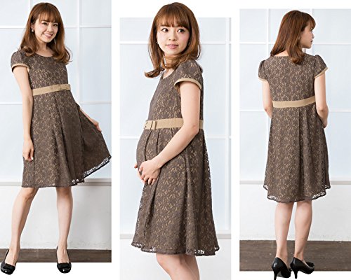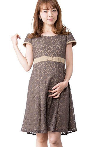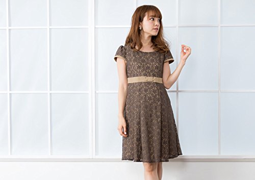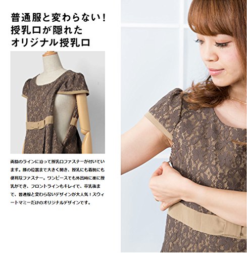 スウィートマミー (Sweet Mommy) ウエストリボン 配色レースワンピース 授乳服 / マタニティ L モカ