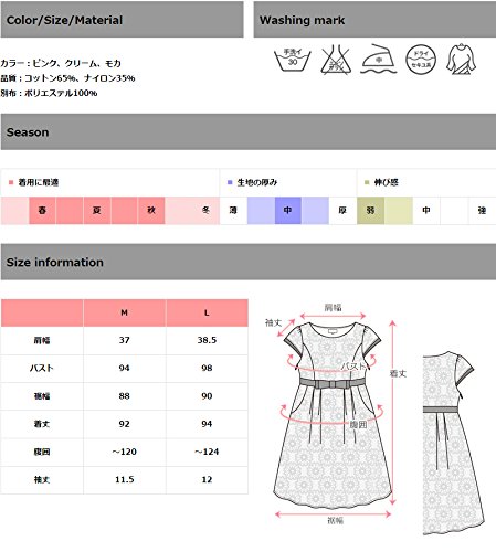 - サイズ(cm): M(肩幅37,バスト94,裾幅88,着丈92,腹囲-120,袖丈11.5), L(38.5,98,90,94,-124,12)