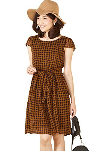 Sweet Mommy 大人可愛い プリントシフォン 授乳ワンピース Aライン ママワンピ フェミニン 一枚でキマる 春 夏 お宮参り 授乳服 マタニティウェア 産前産後 L ネイビー×ブロンズ