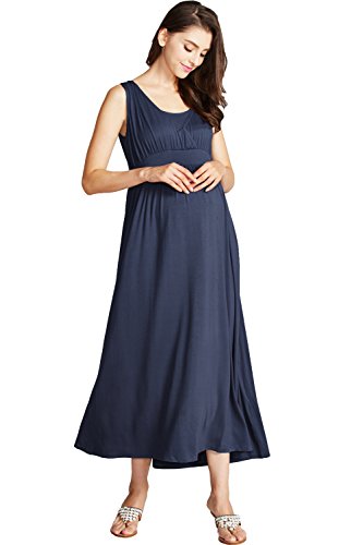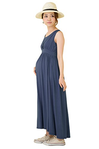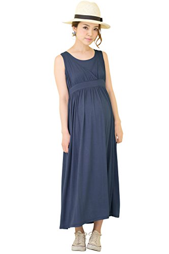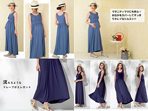 Sweet Mommy マタニティワンピース 授乳服 マキシ 授乳口付き 授乳レイヤー タイトフォルム 産前産後 とろみレーヨン 美シルエット シンプルマキシ 【グレース】 リゾート 春 夏 M ネイビー