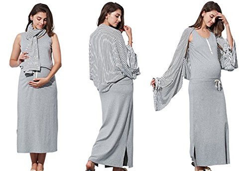 スウィートマミー (Sweet Mommy) ノースリーブ マキシワンピース 授乳ストール付き 2点セット M 杢グレー