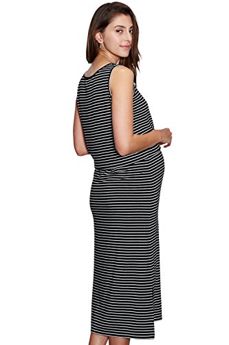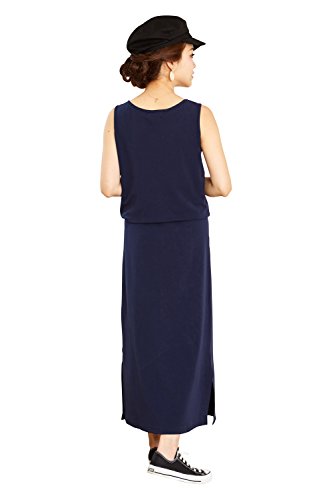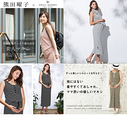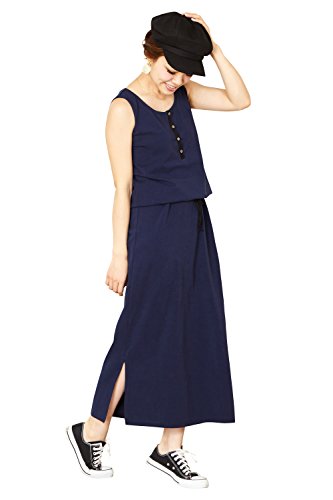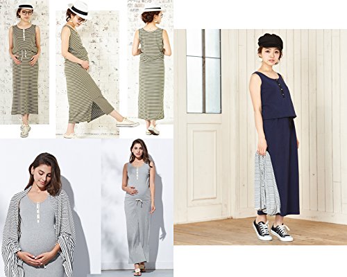 Sweet Mommy ノースリーブ マキシワンピ サイドスリット 上質素材 スナップボタン ウエストブラウジング機能 カジュアル ママワンピ Iライン プチマキシ 産前産後 授乳服 マタニティ/ネイビー/L