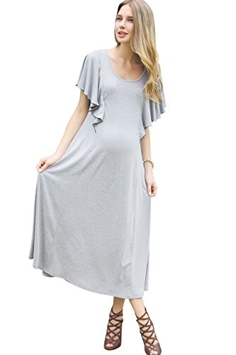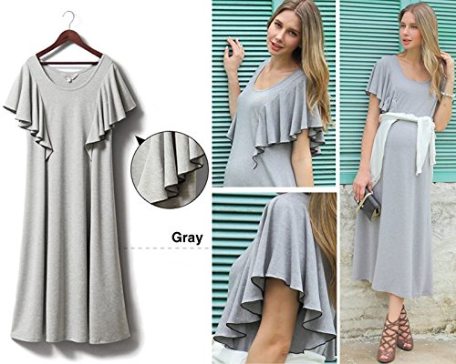 スウィートマミー (Sweet Mommy) フリルスリーブ マキシワンピ マタニティ/授乳服 L グレー