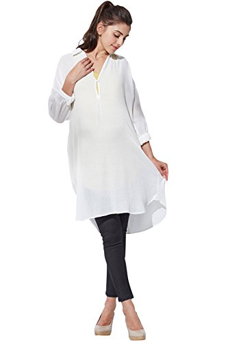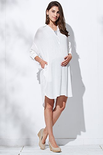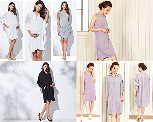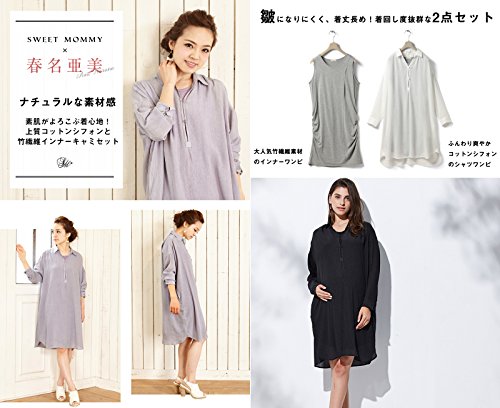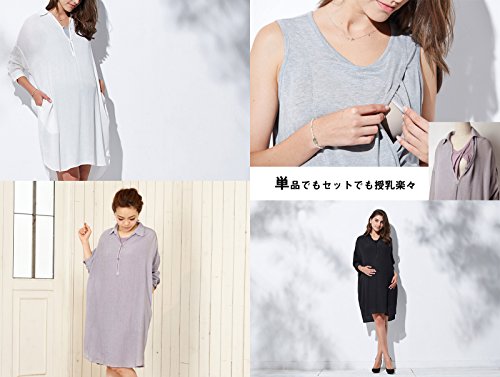 Sweet Mommy シャツワンピ&インナーワンピ 2点セット 抑揚コットンシフォンワンピ ギャザー竹繊維インナー さらさらマタニティシャツ ポケット付き ルームウェア 春 夏 産前産後 授乳服 マタニティ F ホワイト