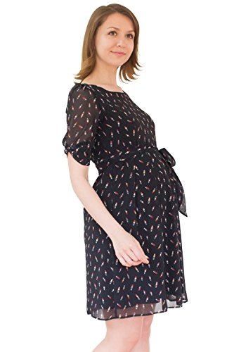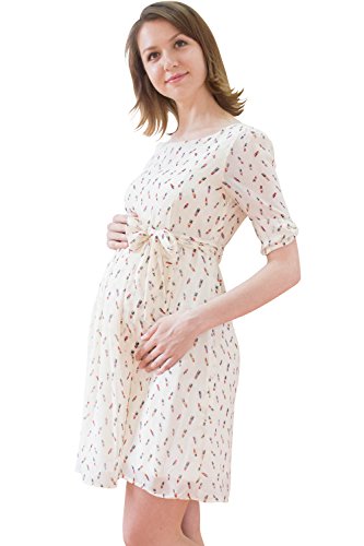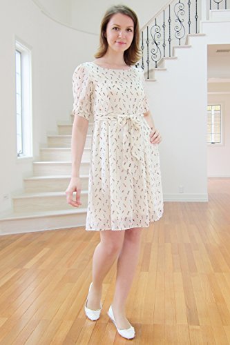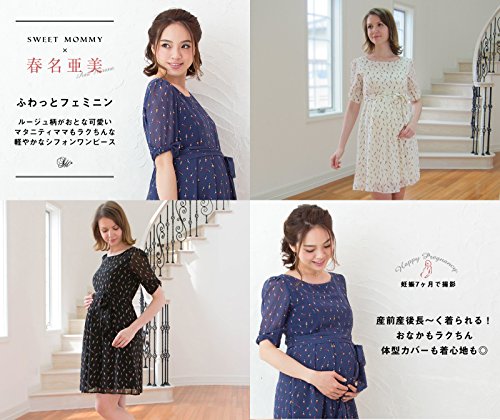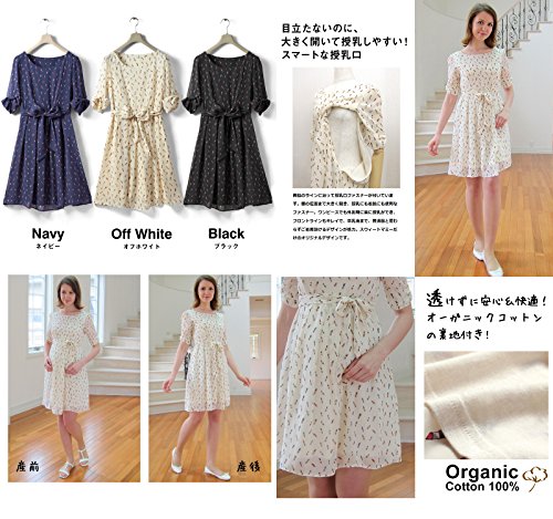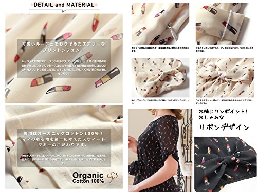 Sweet Mommy 透け感 ルージュ柄 シフォンワンピ オーガニックコットン裏地 袖リボンデザイン リボン取り外し可 上品 フェミニン 産前産後 授乳服 マタニティ M ホワイト