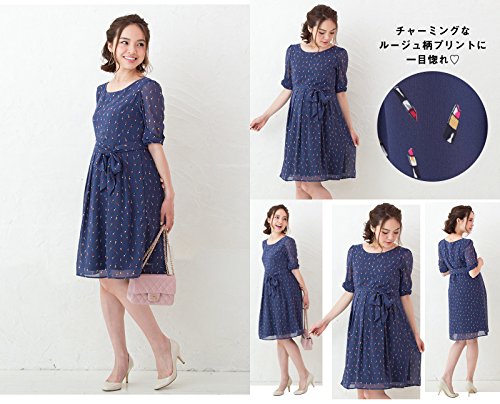 - 【オーガニックコットンの裏地付きで着心地抜群!】ルージュ柄がカワイイ♪美シルエット シフォンワンピ。