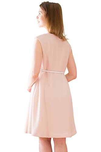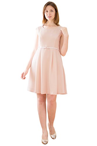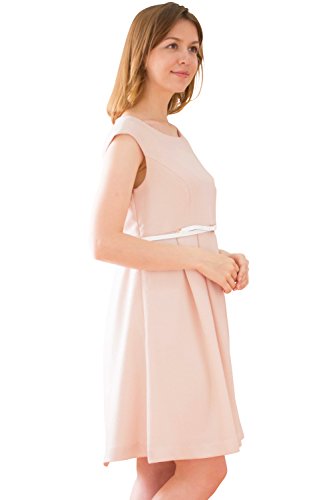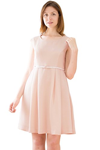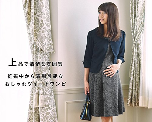 Sweet Mommy ソフトツイード ミックスカラー ハイウエスト切り替え 上品タック 大人可愛い Aライン ワンピース コットン裏地 ベルト付き マタニティ/授乳服 L ベージュミックス