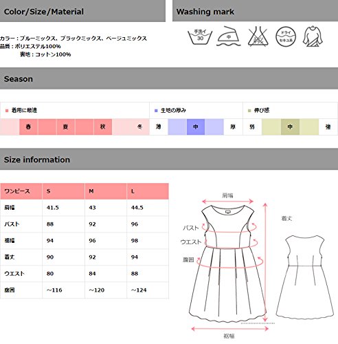 - 品質: S(肩幅41.5,バスト88,裾幅94,着丈90,ウエスト80,腹囲-116), M(43,92,96,92,84,-120), L(44.5,96,98,94,88,-124)