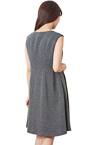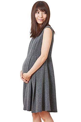 Sweet Mommy ソフトツイード ミックスカラー ハイウエスト切り替え 上品タック 大人可愛い Aライン ワンピース コットン裏地 ベルト付き マタニティ/授乳服 L ブラックミックス