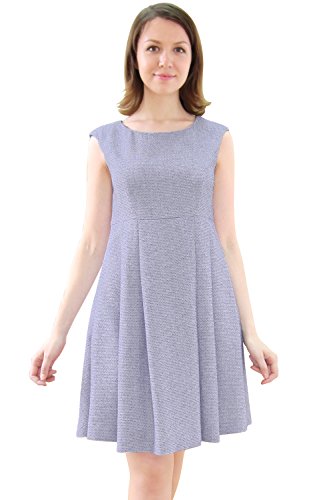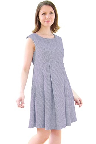 Sweet Mommy ソフトツイード ミックスカラー ハイウエスト切り替え 上品タック 大人可愛い Aライン ワンピース コットン裏地 ベルト付き マタニティ/授乳服 S ブルーミックス