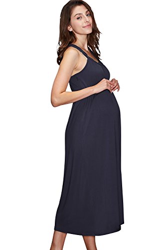 Sweet Mommy 編み込みデザイン なめらかドレープ プチマキシ パッド付き Y字バック ママワンピ リゾート 産前産後 授乳服 マタニティ M ネイビー