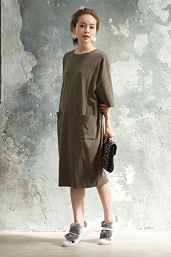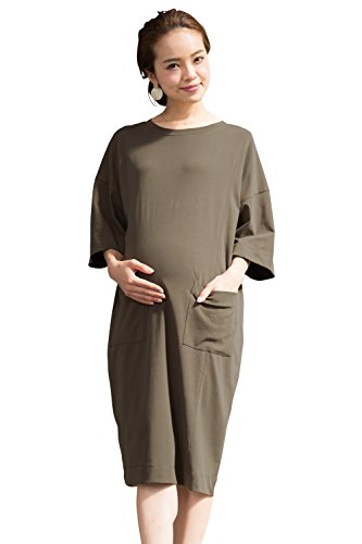 Sweet Mommy ビックシルエット ワンピース ビックT ワンピ 大人カジュアル ストレッチ素材 ダブルポケット 授乳服 マタニティ/F/カーキ