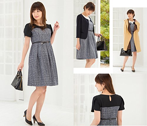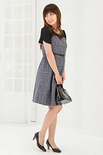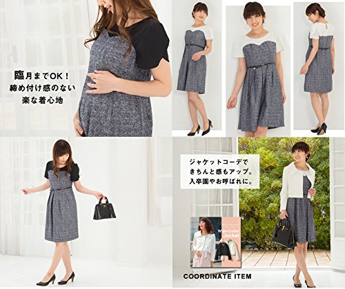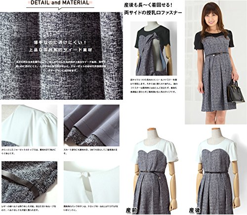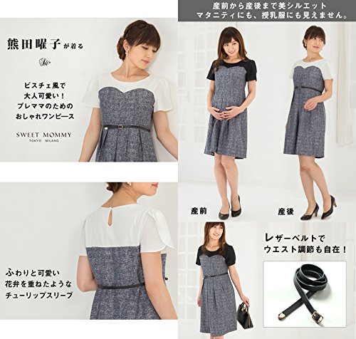Sweet Mommy ビスチェ風 授乳ワンピース 上品ジョーゼット×ツイード チューリップスリーブ 総裏地付き ママワンピ 本革ベルト ベルト取り外し可 お宮参り お呼ばれ 産前産後 マタニティ 授乳服/M/ブラック×ネイビー