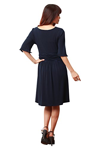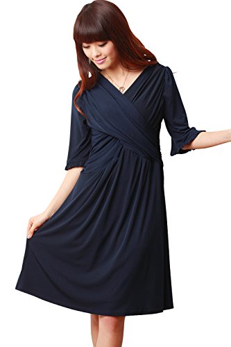 Sweet Mommy クロスライン ギャザーワンピ とろみドレープ 授乳レイヤー付き しなやかストレッチ素材 エレガント 授乳ワンピ スリムフィット 美シルエット【アリアンス】 着痩せ 産前産後 マタニティ 授乳服 実用新案登録レイヤー 【5分袖】ネイビー/M