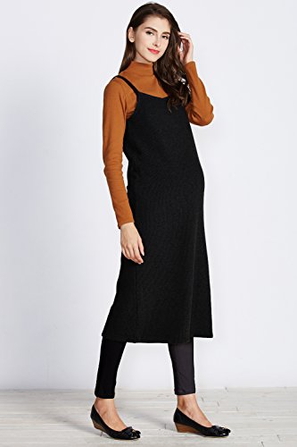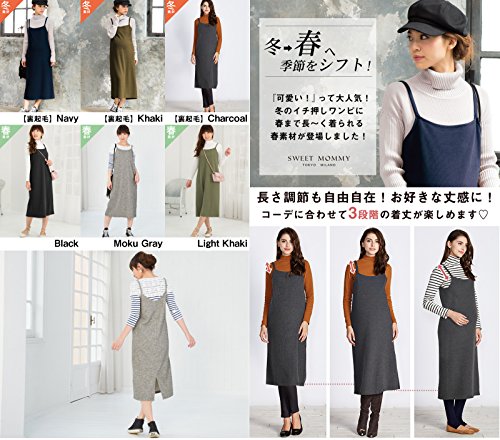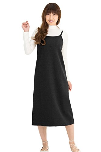 Sweet Mommy 裏地選べる ミラノリブキャミワンピ ふわふわ裏起毛/さらさらリブ ママワンピース マイクロボア・秋冬 リブニット・春 肩ストラップ調節可 マタニティ 授乳服/M/ブラック(春・秋素材)