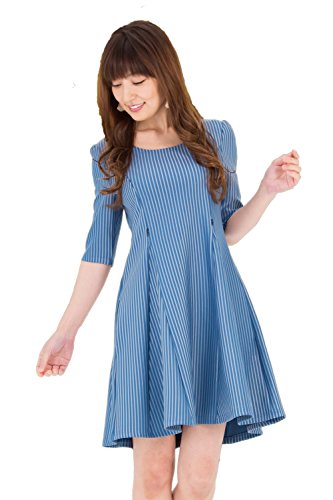 Sweet Mommy スリムフィット フレア ストライプ 美シルエット 授乳ワンピース ポンチ素材 着痩せ ポケット付き 産前産後 マタニティ 授乳服/M/アンティークブルー