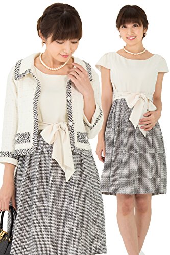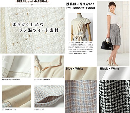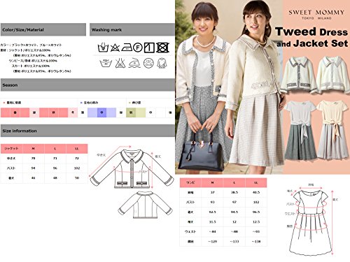Sweet Mommy ココツイードセットアップ フリンジジャケット&授乳ワンピ ラメ混 お宮参り 入卒園 お呼ばれ 上品ママワンピ 裏地付き 産前産後 マタニティ 授乳服/L/ブラック×ホワイト
