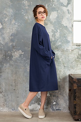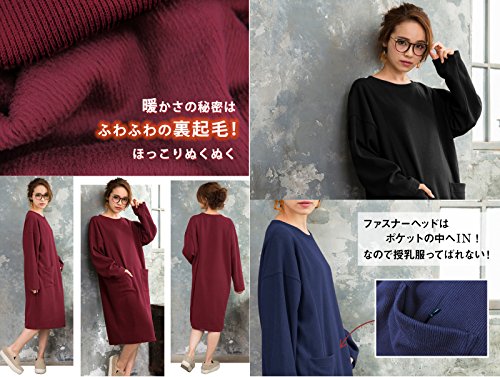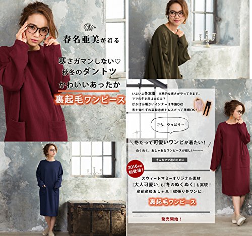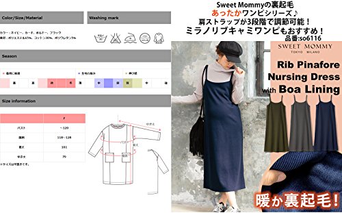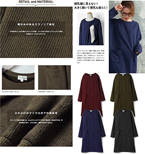 Sweet Mommy 裏マイクロボア ミラノリブニット ママワンピ ふわふわ裏起毛 大人可愛い あったか 大きめポケット 秋冬 マタニティ 授乳服/F/ネイビー