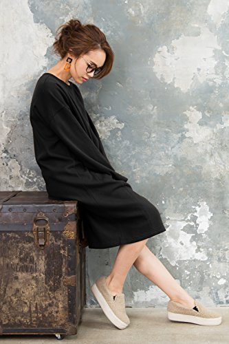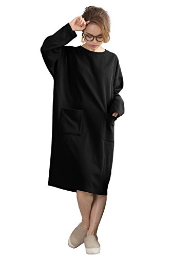 Sweet Mommy 裏地選べる ミラノリブ ママワンピ ふわふわ裏起毛/さらさらリブ 大人可愛い 大きめポケット 裏マイクロボア・秋冬 リブ・春素材 マタニティ 授乳服/F/ブラック(裏起毛)