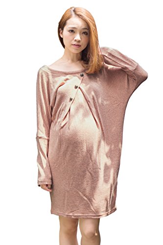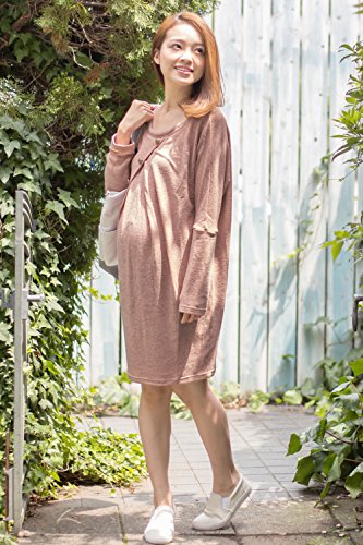 Sweet Mommy ドルマン授乳チュニック やわらかニット フロントボタン 大人可愛い 杢入りカラー ママワンピ 春 秋 冬 産前産後 授乳服 マタニティ/ピンクベージュ/F