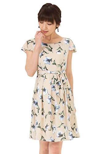 Sweet Mommy 大人可愛い プリントシフォン 授乳ワンピース Aライン ママワンピ フェミニン 一枚でキマる 春 夏 お宮参り 授乳服 マタニティウェア 産前産後/L/ベージュ
