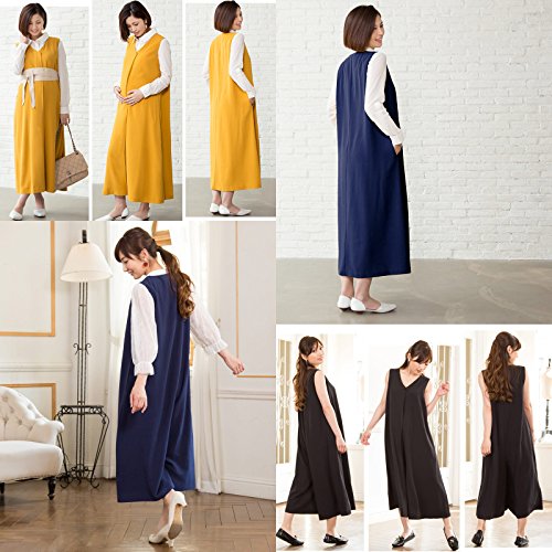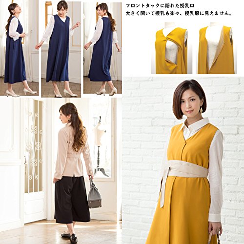 Sweet Mommy タイプ選べる オールインワン or ワイドワンピース フロントタック ツイルジョーゼット 授乳ワンピース ポケット 裏地 上品 オフィス 授乳口付き 産前産後 授乳服 マタニティ/ブラック/オールインワン・L
