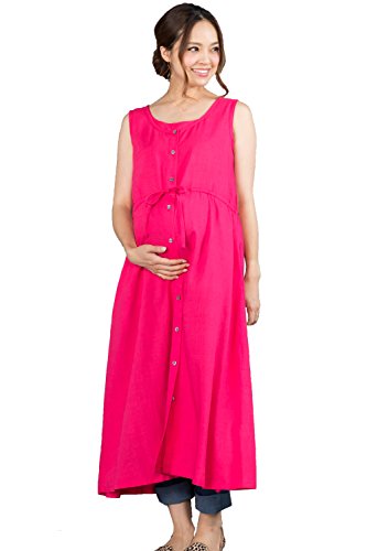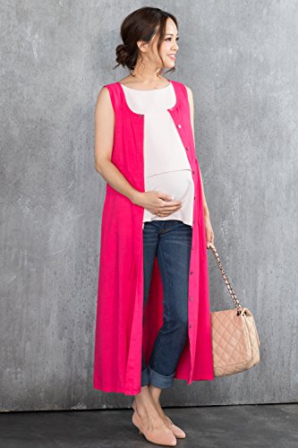 Sweet Mommy リネンワンピ 授乳タンク ペチコート 3点セット ウエスト調節可能 ポケット付き しわになりにくいハーフリネン 授乳用タンクトップ ワンピース ロングジレ カーディガン ノースリーブ 春 夏 産前産後 授乳服 マタニティ/M/ピンク