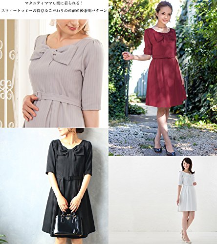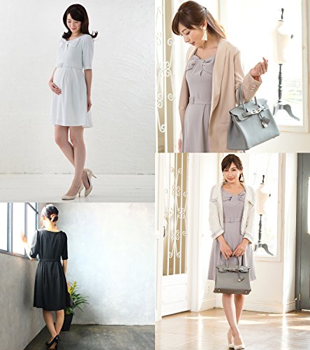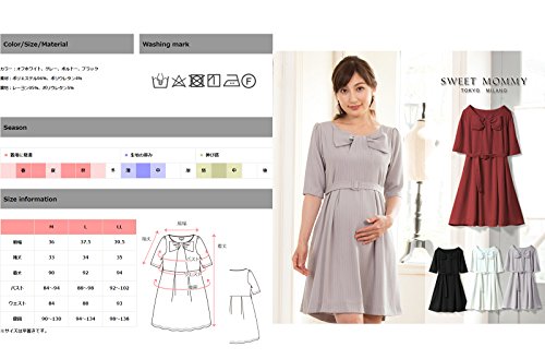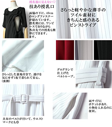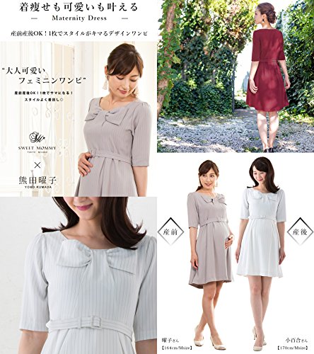 Sweet Mommy 大人可愛い ピンストライプ リボンワンピ 授乳口付き 裏地付き 大きいサイズ ストレッチツイル素材 ポケット付き 共地ベルト付き 上品 オフィス ワンピース 5分袖 着痩せ 春 夏 秋 産前産後 授乳服 マタニティ/グレー/M