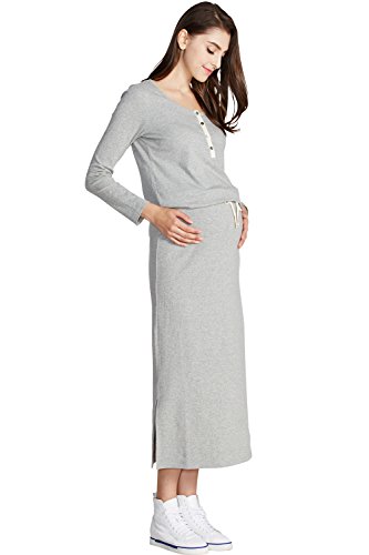 - 【産前から産後まで美シルエット】一枚でさらっとスタイルがキマる、着心地抜群の 長袖ブラウジングマキシ。