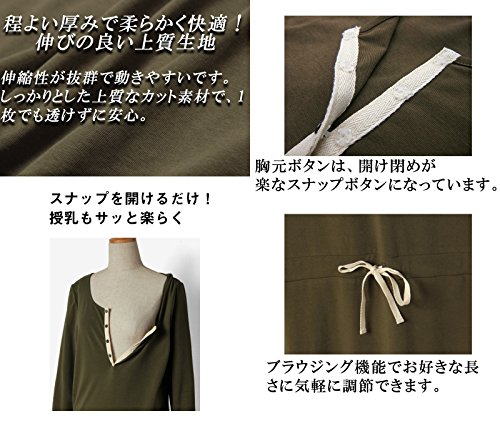 - 【授乳機能付き】胸元ボタンはスナップになっているから、開閉も楽らく!サッとスナップを開けて、スマートに授乳ができます。
