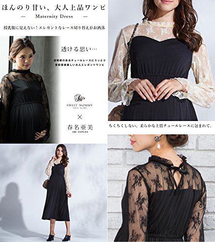 - 【ほんのり甘い、大人上品ワンピ】授乳服に見えない!エレガントなレース切り替えがお洒落