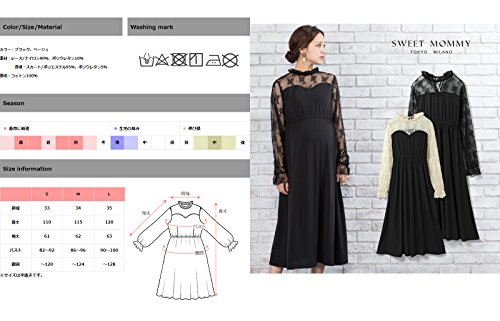 Sweet Mommy マタニティ 授乳服 ワンピース 授乳口付き チュールレース フリル袖 ベロアバックリボン 大きいサイズ コットン裏地付き チクチクしない 透け感 ビスチェ風切り替え ロングワンピ フォーマル ママドレス お宮参り 結婚式 二次会 お呼ばれ 秋 冬 産前産後/ベージュ/S