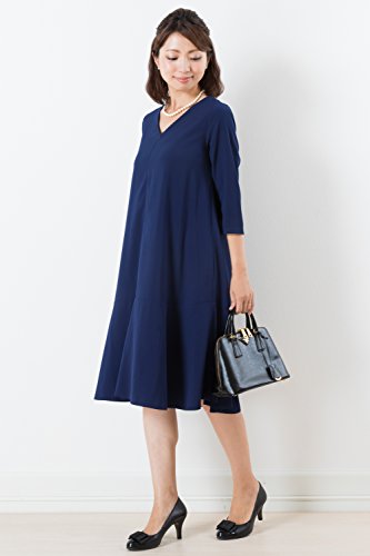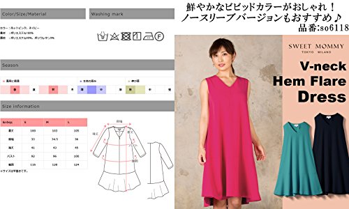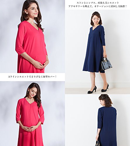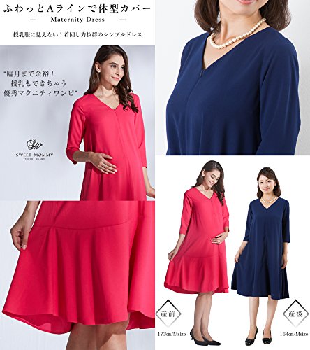 Sweet Mommy マタニティ 授乳服 ワンピース Vネック 裾フレア 授乳口 大きいサイズ 小さいサイズ 裏地付き ママワンピ ドレス 長袖 7分袖 シンプル Aライン お呼ばれ ベビーシャワー 二次会 パーティー 春 夏 秋 産前産後/ネイビー/M