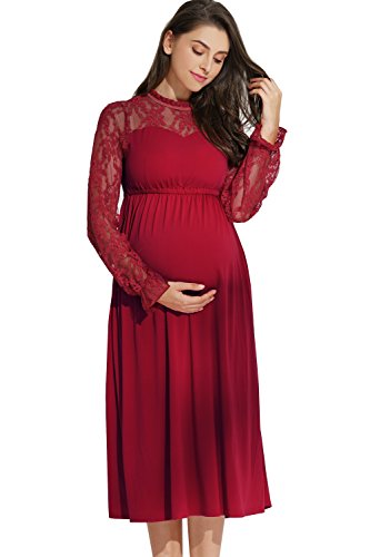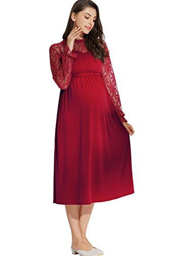 Sweet Mommy マタニティ 授乳服 ワンピース 授乳口付き レース切り替え レッド L
