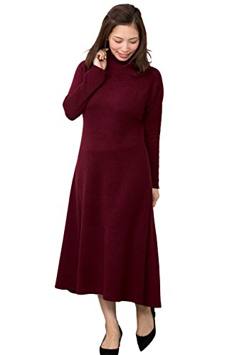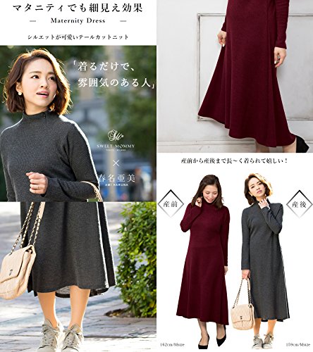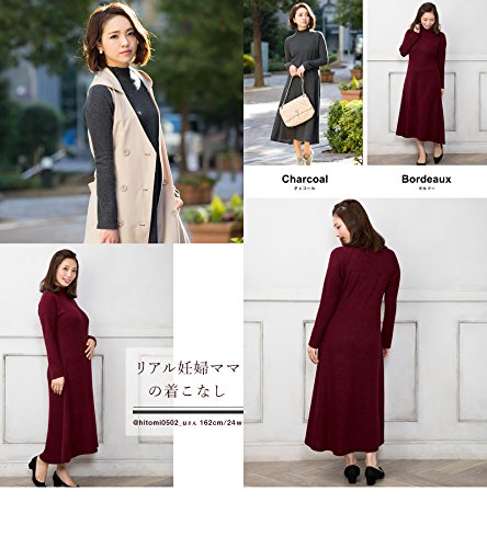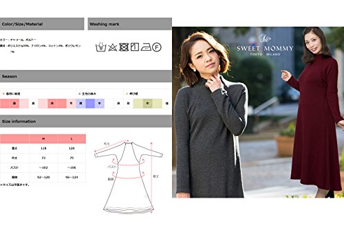 Sweet Mommy マタニティウェア 授乳服 ワンピース 授乳口付き リブニットワンピ テールカットロングワンピ ボトルネック ラグランスリーブ 大きいサイズ 授乳 マタニティ 授乳服 産前産後 春 秋 冬/ボルドー/M