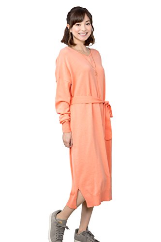 Sweet Mommy マタニティウェア 授乳服 ワンピース 授乳口付き ニットワンピ タイプ選べる Vネック/ハイネック オーガニックコットン100% ロングワンピ ざっくり片畦編み ハイネック 赤ちゃんの肌にも安心 大きいサイズ 授乳 セーター トップス マタニティ 授乳服 産前産後 春 秋 冬/Vネック・アプリコット/F