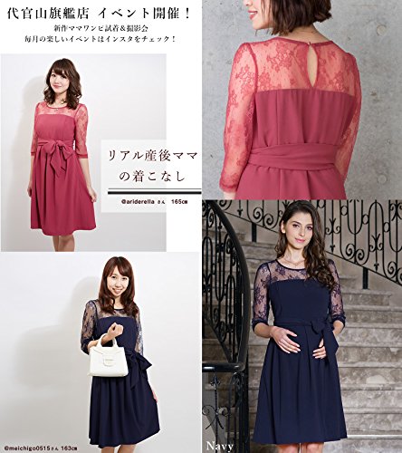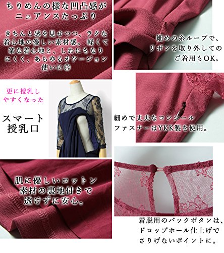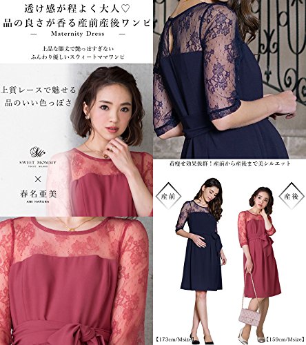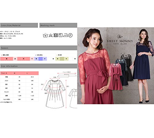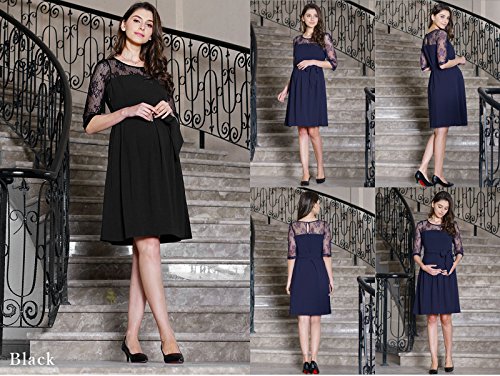 Sweet Mommy マタニティ 授乳服 ワンピース レースコンビ ちりめん風素材 授乳口付き ドレス ウエストリボン取り外し可能 大きいサイズ 裏地付き 透け感 アンティーク風フレンチレース お宮参り フォーマル 結婚式 産前産後/ブラック/M