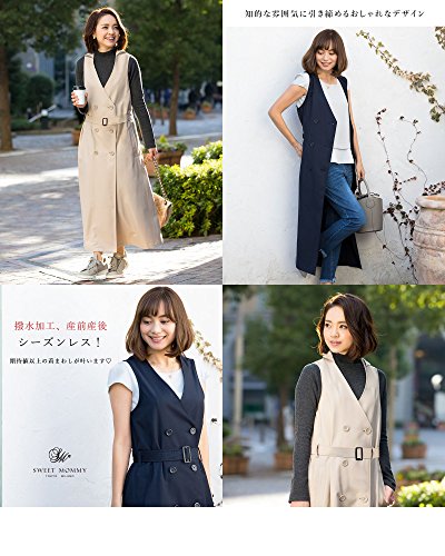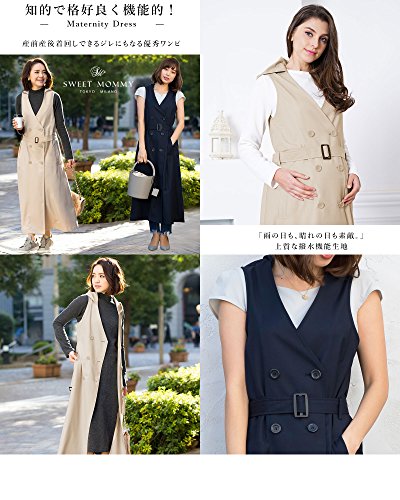 Sweet Mommy トレンチ風 ジレワンピ マタニティ アウター フード付き 大きいサイズ 撥水加工 ネイビー S