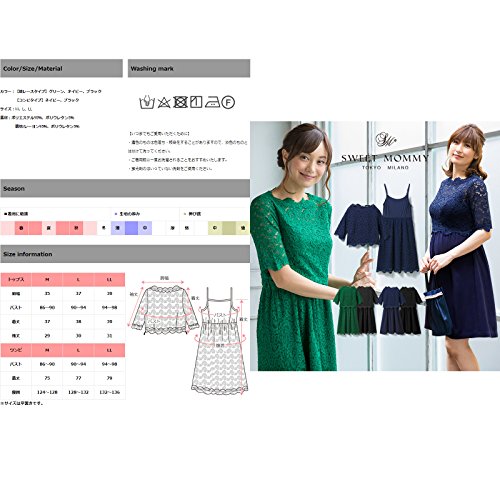 Sweet Mommy マタニティ 授乳服 ワンピース トップス キャミワンピ 2点セット ストレッチレース コンビブラック L