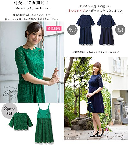 - 【可愛くて画期的!】伸縮性抜群で臨月もストレスフリー!総レースでも母らしい清潔感のあるきちんとドレス