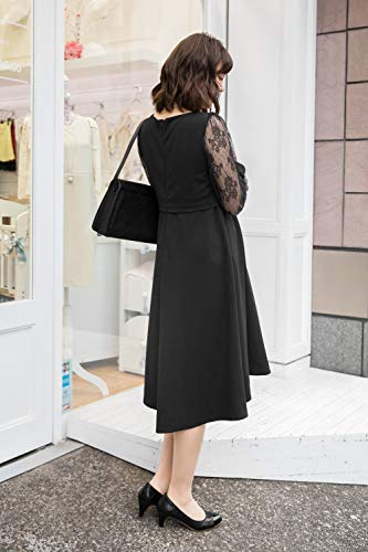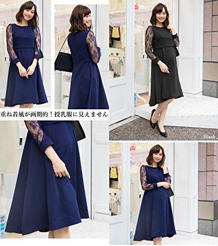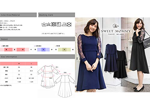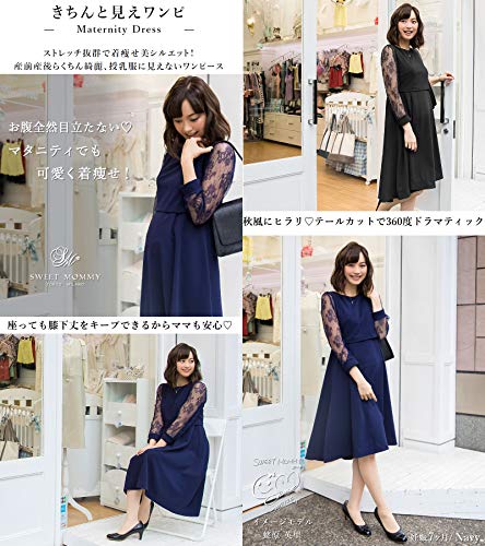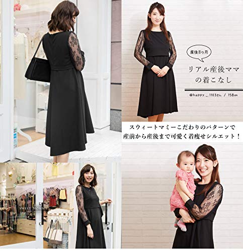 Sweet Mommy マタニティ 授乳服 ワンピース 袖レース バックロングテールカット ブラック M