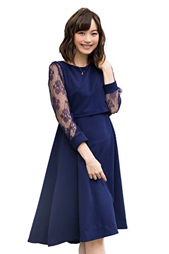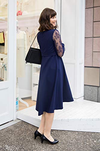 Sweet Mommy マタニティ 授乳服 ワンピース 袖レース バックロングテールカット ネイビー L